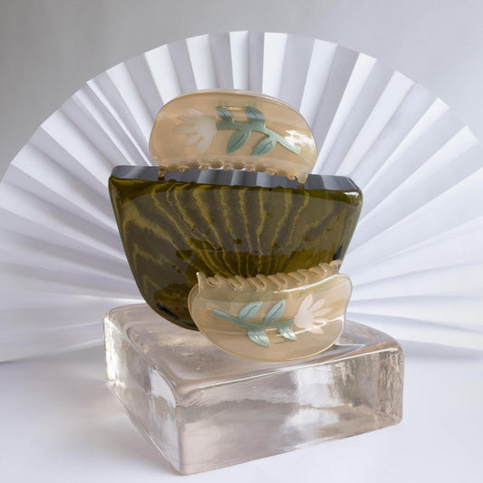 Chloe – Große, effing Perlen-Haarspange in Creme
