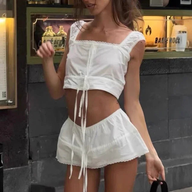 BOHO CHIC LACE-UP TOP & BOHO CHIC LACE-UP MINI SKORT