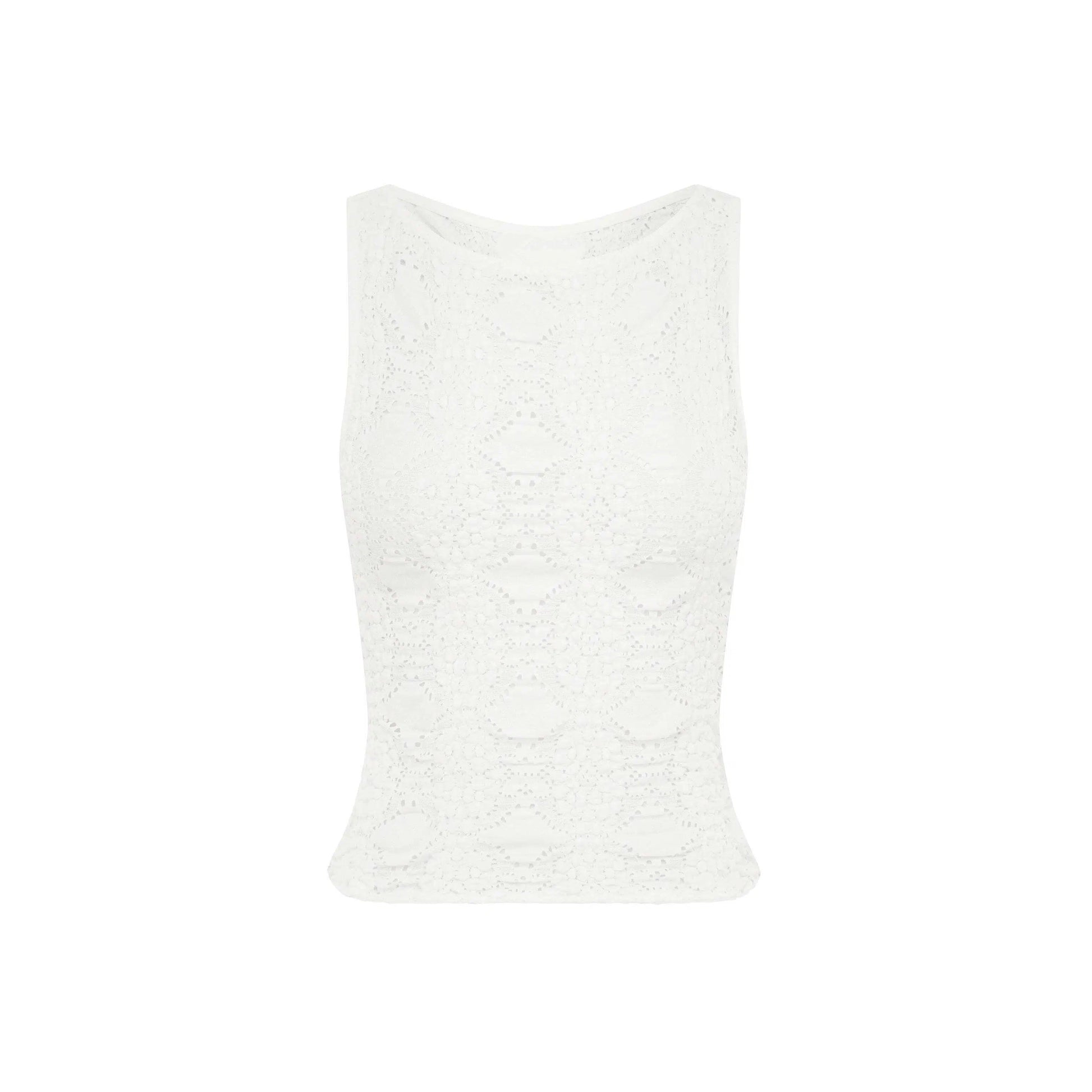 The Maeve Top is a slim fit, long line top, featuring custom embroidery detailing throughout
