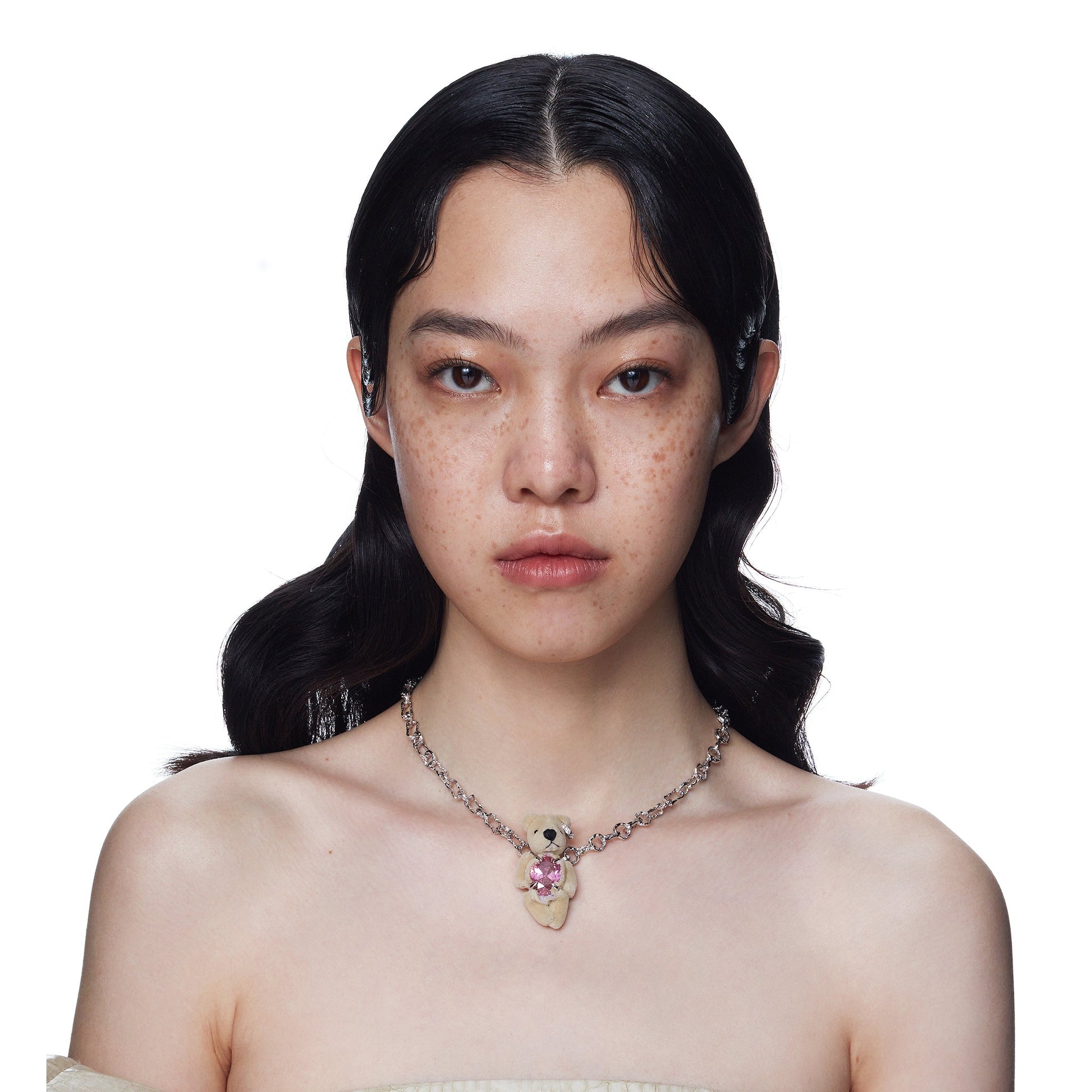 Paradise/ Teddy bear elliptical zircon Necklace