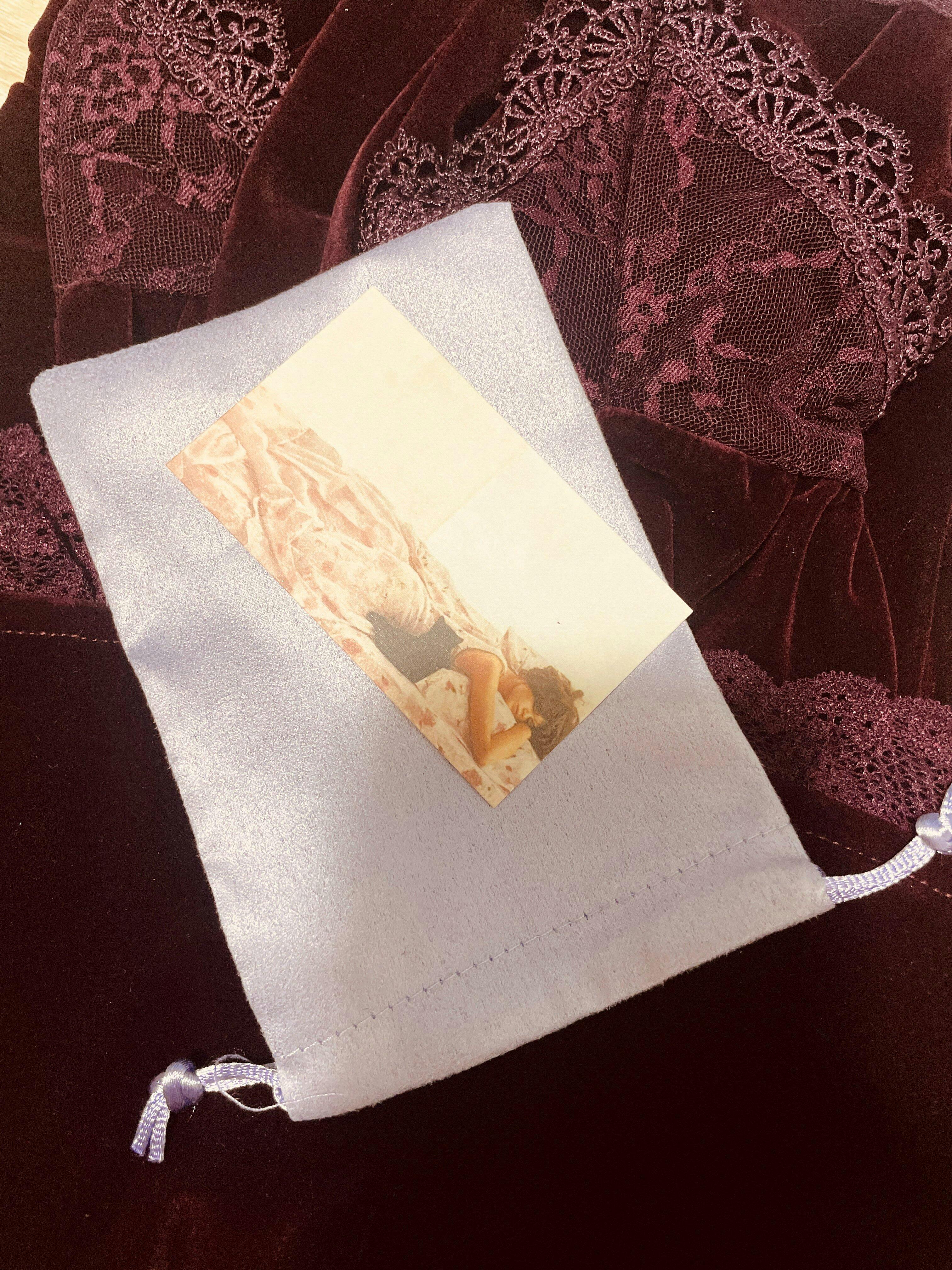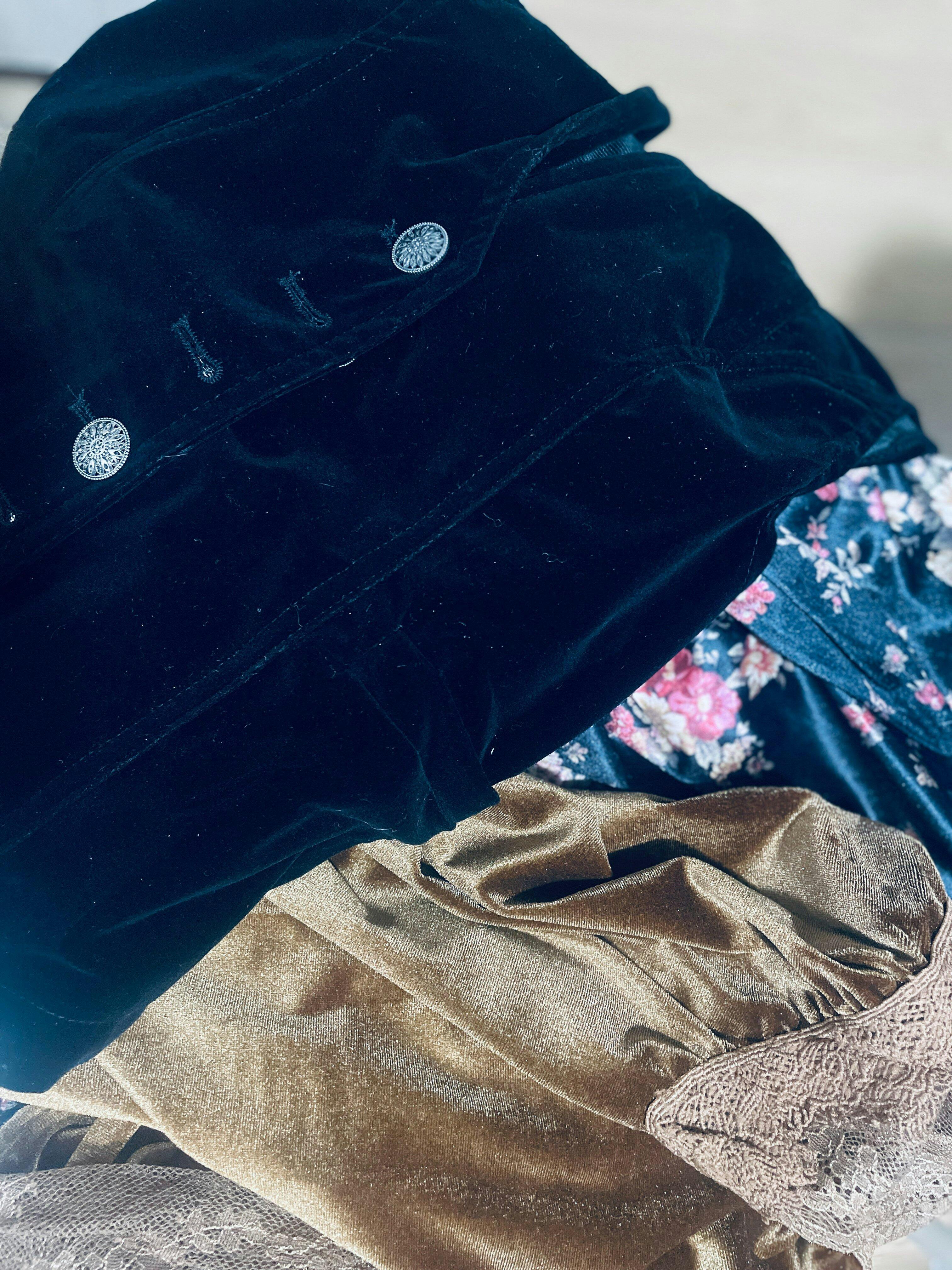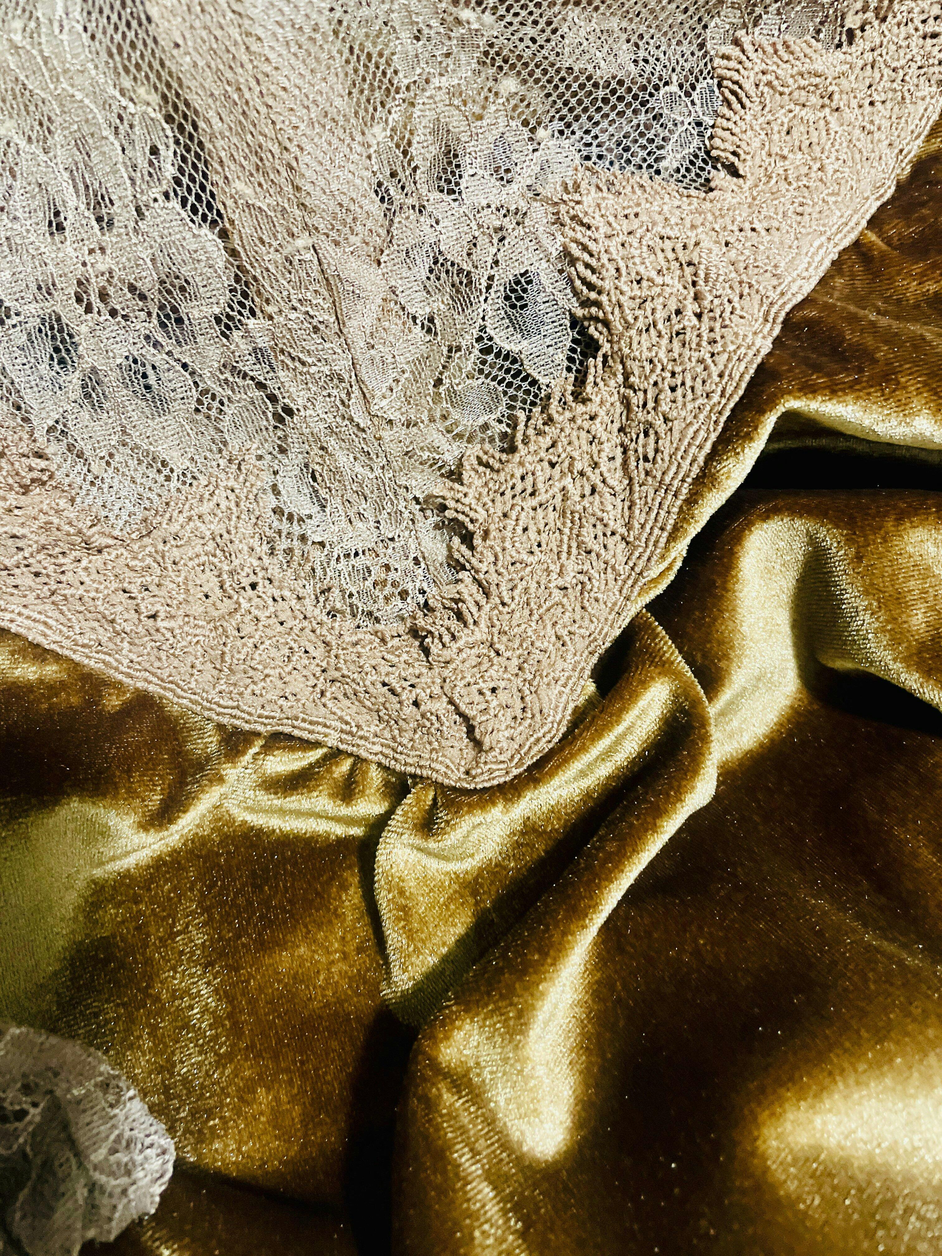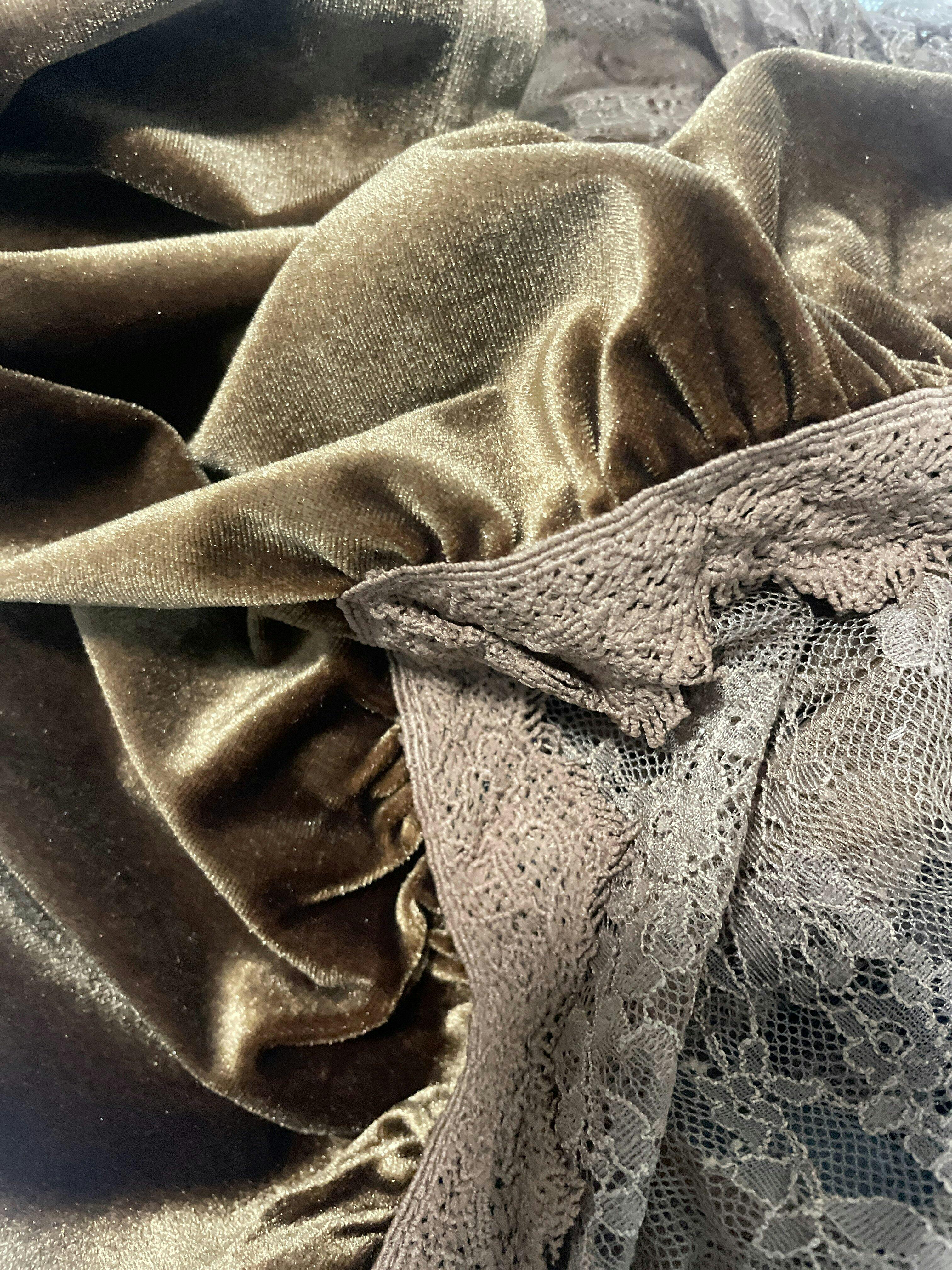 - Design: The intricate lace patchwork adds a delicate contrast to the rich velvet, providing an elegant and sophisticated look.