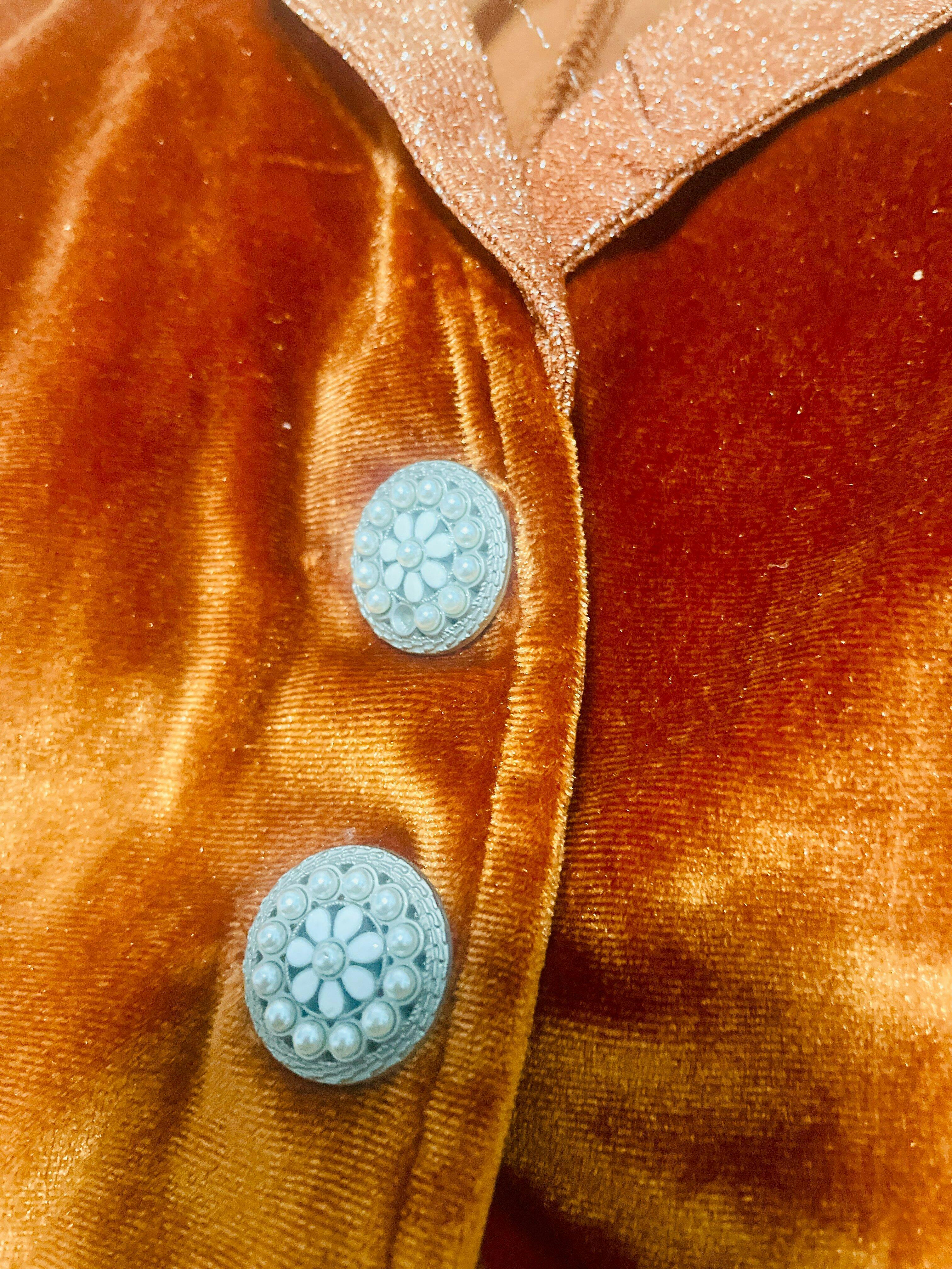 Vintage Three-Quarter Sleeves Lace High-Low Hem Velvet Two Pieces Set