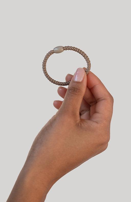 Constructed of thick elastic accented with an ornamental oval bead, these hair bands are no crease and damage free. These hair ties are perfect for a simple ponytail and offer exceptional hold. Keep a few in your purse, desk, and car for a quick and comfortable on-the-go styling solution.