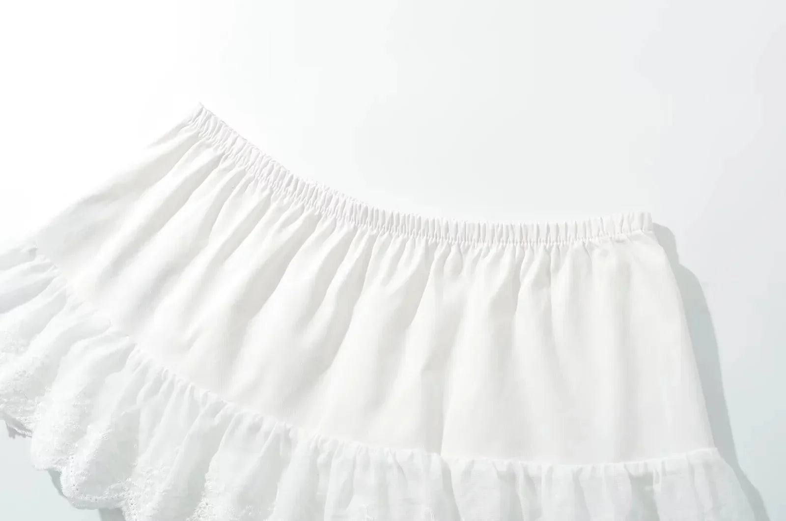 Organic Cotton Mini Skirt With Lace Trim And Tonal Satin Bow At Front.Made from 100% Organic Cotton.