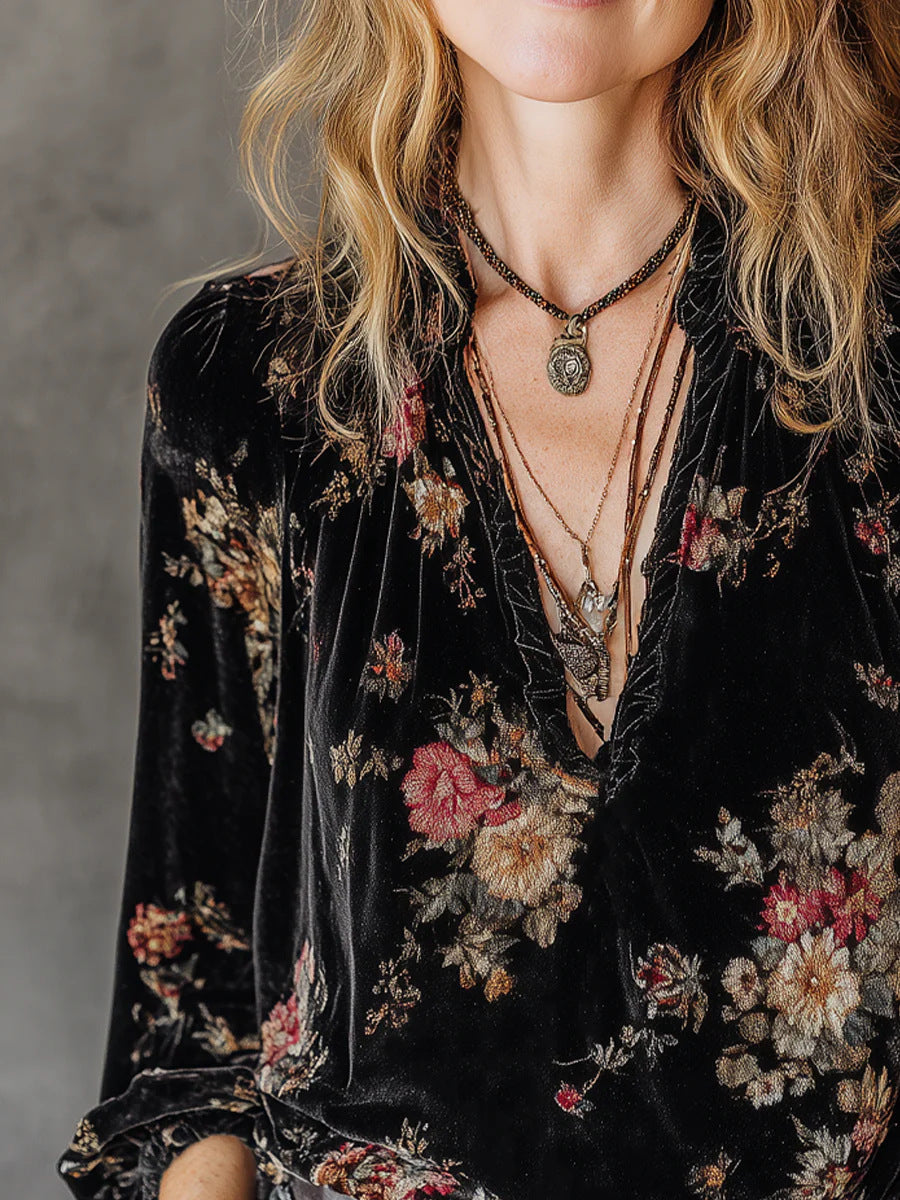 Our Velvet Vintage Flower Lantern Sleeve Shirt isn't about being seen; it’s about how you feel when you’re seeing yourself. It’s a piece that honors your unique style, blending a grounded, old-soul aesthetic with the quiet confidence of a woman who has nothing to prove. Whether you're romanticizing a quiet afternoon at home or stepping out into the world on your own terms, it’s alright to be different. In fact, it’s where your true self lives.
